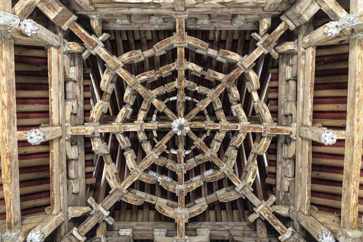 晋城市高平市神农镇中庙村炎帝古中庙元代无梁殿木质藻井。王剑摄