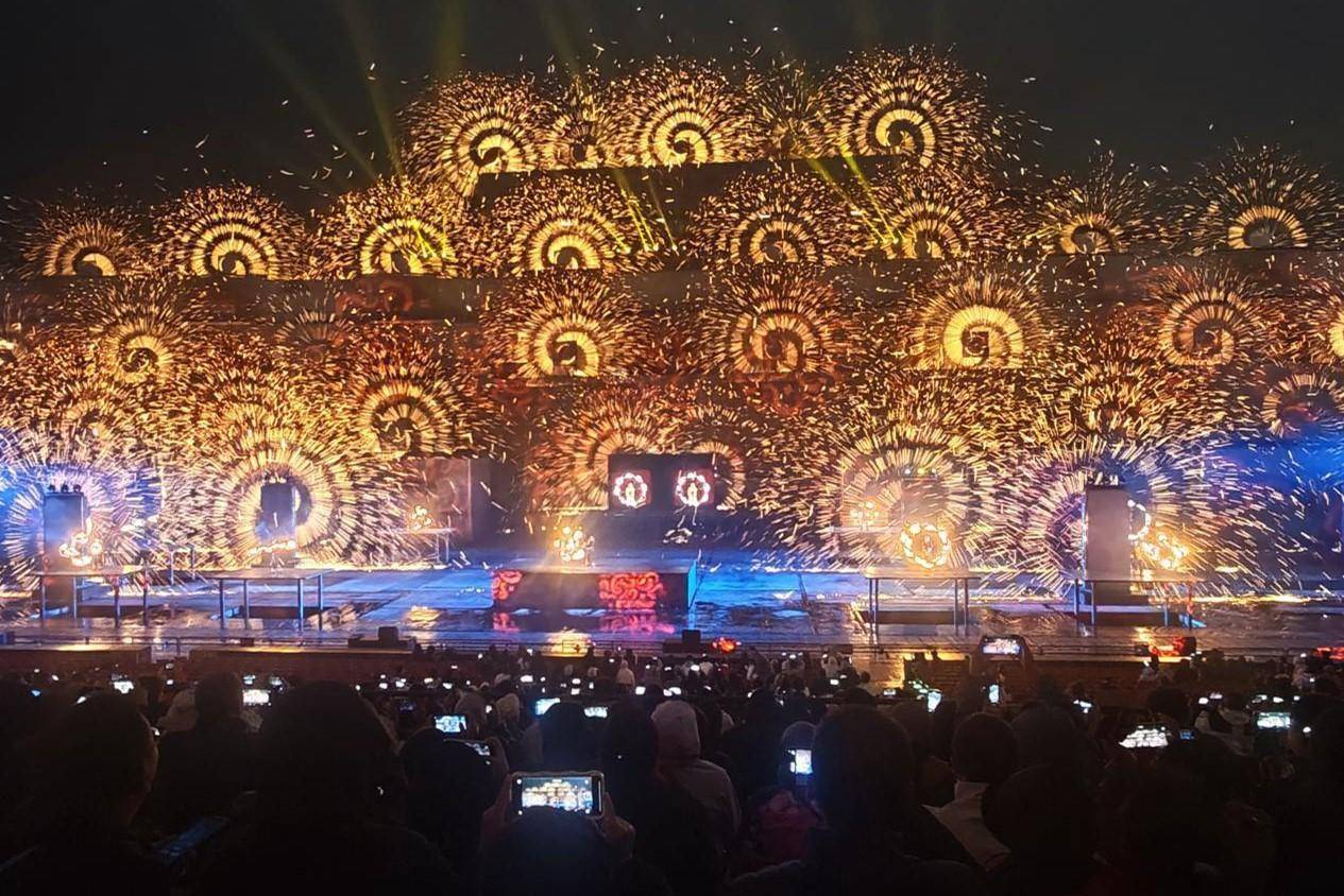 入秋夜寒,观众裹紧外套、哈着白气,翘首以待每晚的《千年铁魂》打铁花表演。